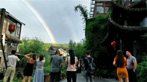 “非常壯觀!非常漂亮!”張家界國家森林公園入口的鏡立方山居主人龍武非常激動地說,雨后的彩虹很美,雙彩虹讓張家界美景更加神奇。為此,他拍下了很多彩虹影像資料發給朋友們分享。