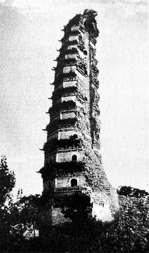 明代的隆慶年間法門寺倒了以后,法門住持的僧人準備用自己的力量集資。他用苦刑的辦法,就是用很重的兩個鐵鎖掛在一百只長鐵鏈上,然后穿透鎖骨、拖地而行到各地化緣。大家看到這樣的場面就覺得他是真心要修寶塔,都紛紛捐錢。但是錢還是有限的,所以到明代萬歷7年才開始修建13級的磚塔(后來也倒塌了),一直修到萬歷37年,整個修了30年。