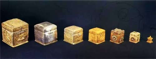5月4日,法門寺地宮文物的最后清理工作開始進行,由中科院研究員王孖和考古學家韓偉主持。誰都不會想到,那個沉甸甸的寶函里套著一重又一重的寶函。直到第七重,里面是鑲滿珍珠的金質寶函,寶函里是一座寶珠頂小金塔。第八重是個純金塔,打開后,金座子上有個像手指一樣的銀柱子。大家都愣了,韓偉忽然想起真身字紋的描述“高一寸二分上齊下折,高下不等,色白如玉,少青,二角有文文并不徹,髓穴方大中有隱跡”,就知道佛指舍利發現了。