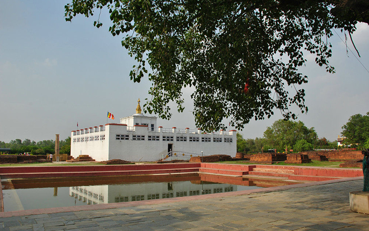 蘭毗尼是梵文“可愛”的意思,這里原為古代天臂國善覺王夫人蘭毗尼的花園,此處因此而得名,今天的蘭毗尼是個不大的村莊,綠樹成蔭,景色秀麗,有許多與釋迦牟尼有關的歷史遺跡。這里有一座白色方形建筑,是兩層石砌的平臺,在濃郁茂盛的樹木襯托下,十分莊嚴肅穆。這就是瑪雅黛維女神廟,也稱摩訶摩耶夫人廟,瑪雅黛維是北天竺迦毗羅衛國(今尼泊爾境內蘭毗尼附近)凈飯王的妻子,相傳公元633年尼泊爾陰歷正月的望日,她在回娘家的路上來到蘭毗尼花園,在一株巨大的娑羅雙樹下休息的時候生下了悉達多·喬答摩,即后來聞名世界的佛教始祖釋迦牟尼。釋迦牟尼位于印度平原的南部,四周掩映著森林樹木。釋迦牟尼的人們相信佛祖的母親之所以選擇了釋迦牟尼是因為這里的環境寧靜祥和。盡管釋迦牟尼附近沒有什么城市,人口也不多,但這里仍計劃有大的發展:修建花園、植樹建渠、增加膳宿設施,甚至還要新建一個圖書館。游人和朝圣者在這里吃住都很方便,由日本人負責興建的豪華型酒店更為不同消費者提供了更多選擇。游客們可以乘飛機去往派勒瓦,當然也可坐公共汽車,或是租一輛吉普或三輪車去那兒。派勒瓦與加德滿都(尼泊爾首都)之間還有固定通車。后人在釋迦牟尼出生處建造了這座別具一格的瑪雅黛維女神廟,現廟內供奉著女神石雕像,右手攀把著娑羅雙樹的樹的枝干,新生的嬰兒悉達多端多端立在近旁的蓮臺上。