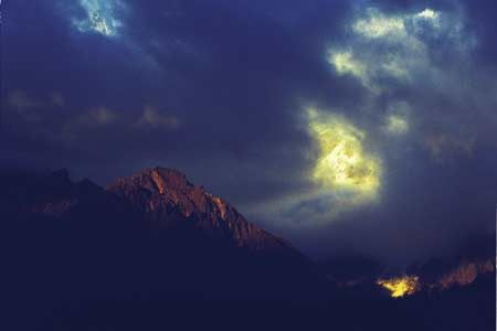 那一刻我有了從未有過的要爬上去、要到那雪峰里面去看看的沖動。那一刻,我有了登山的念頭,我想,有朝一日,沒準我會去登山。我覺得我無法抵擋那種冰清玉潔的誘惑。天色很快暗了下來,四周的景物卻依稀可見。雖然看不到月亮的臉,但皎潔的月光能讓我們毫不費力地看清自己的掌紋。月光能透亮純凈到這種程度,大約還因為雪白的加拉白壘雪峰巨大的反光作用吧。用不著手電筒,我們在加拉白壘月光下很順利地生起了火,就著月光,我輕輕松松地寫了日記。