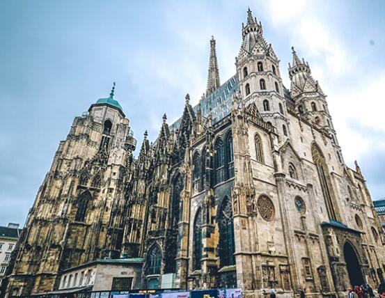 圣斯蒂芬大教堂——歐洲三大教堂之一,甚而享譽全球。坐落在維也納市中心的老城區,故有“維也納心臟”之稱,是維也納城市標志性建筑之一。圣斯蒂芬大教堂建于十二世紀末,歐洲最高的哥特式古建筑之一,塔尖高達137米,僅次于德國科隆大教堂。整個教堂的建筑風格呈奇特的混合式,朝西的正門是羅馬風格,尖塔是哥特式,而圣壇是巴洛克風格。教堂還是登高眺望的絕佳地點,登343級臺階到達教堂頂部的小屋,在那可以欣賞到維也納的旖旎風光。