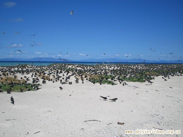 珊瑚島是無數(shù)海鳥的棲息地,成群的海鷗遮空蔽日,為大堡礁增添了無限生機。這里聚集的鳥類有240多種。如燕鷗、黑燕鷗、海鷗、鹱(音hù)、軍艦鳥、鰹鳥、大海雕等常在珊瑚礁面聒噪。