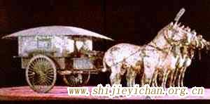 1980年12月,在秦始皇陵封土西側出土了兩組形體較大的彩繪銅質車馬,這是迄今為止中國所發現的年代最早、形體最大、結構最復雜、制作最精美的銅鑄馬車。它與兵馬俑交相輝映,為始皇陵增添了新的光彩,也為研究秦代歷史、銅冶鑄技術和古代車制提供了實物資料,被譽為中國古代的“青銅之冠” 。