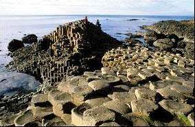 在英國北愛爾蘭安特里姆平原邊緣,沿著海岸在玄武巖懸崖的山腳下,大約有四萬多根石柱組成的賈恩茨考斯韋角從大海中伸出來。這四萬多根大小均勻的玄武巖石柱聚集成一條綿延數千米的堤道,被視為世界自然奇觀。300年來,地質學家們研究其構造,了解到它是在第三紀由活火山不斷噴發而形成的。一股股玄武巖熔流涌出地面,冷卻后受所形成六邊或五邊、四邊形的棱柱。