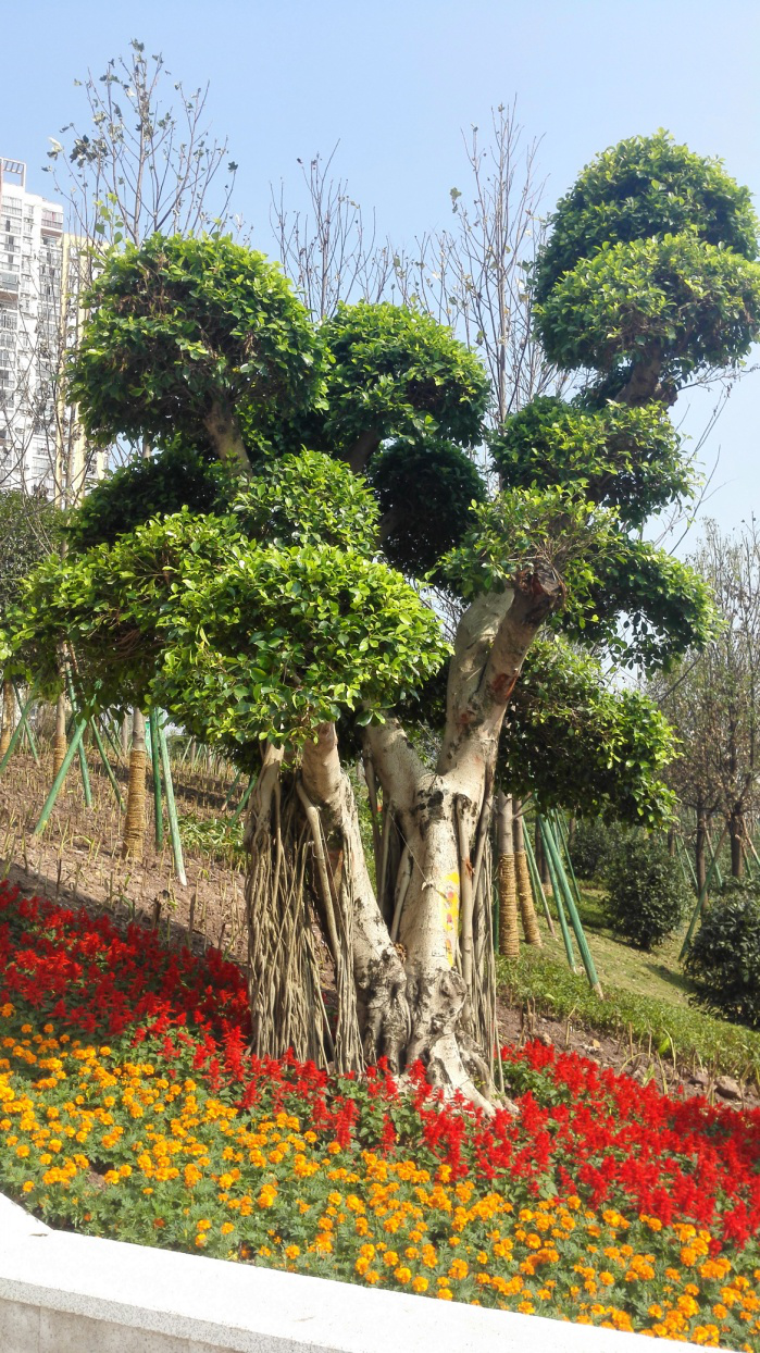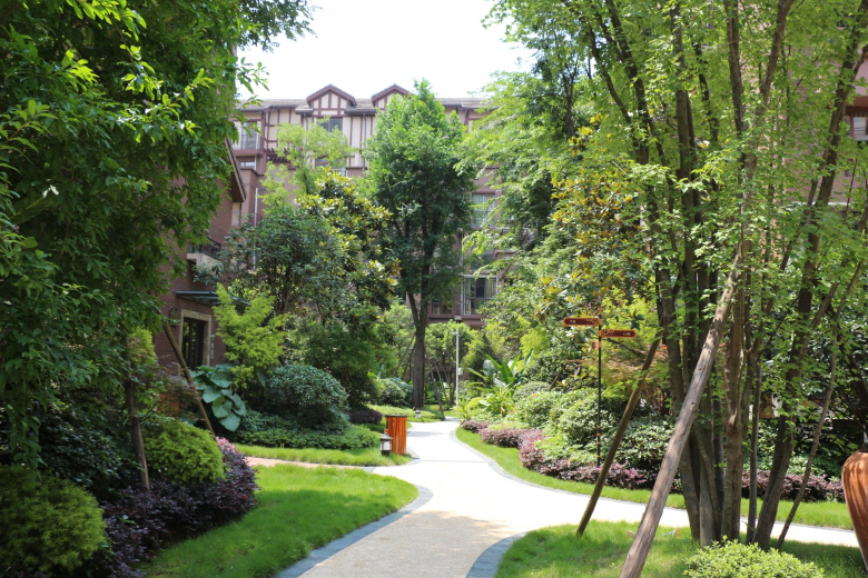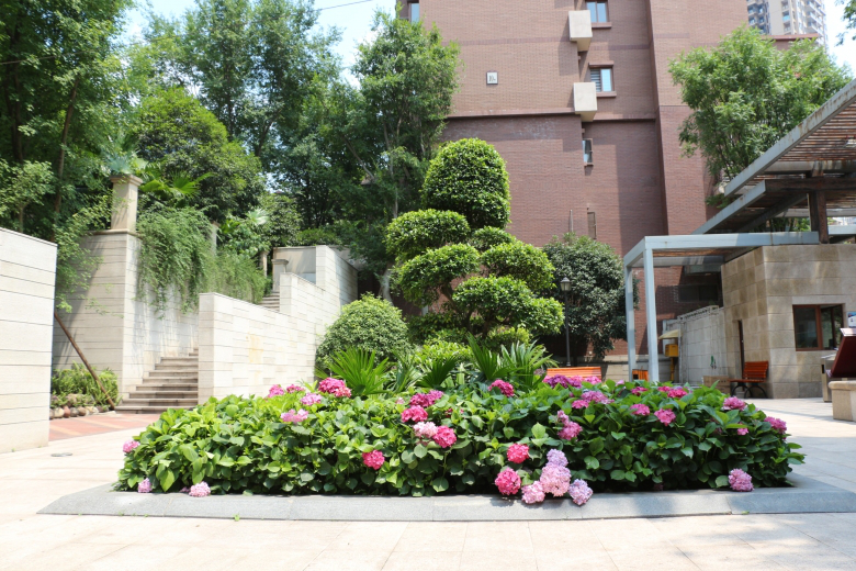 軟景部分:植物造景作為景觀營(yíng)造的重心,結(jié)合現(xiàn)場(chǎng)空間限制的特點(diǎn),我單位對(duì)其進(jìn)行的大量?jī)?yōu)化再設(shè)計(jì),打造一個(gè)猶如森林般清新、舒適的生活環(huán)境。對(duì)比原設(shè)計(jì),節(jié)點(diǎn)處大量增加了叢生樹(shù)種(如叢生三角楓、叢生欒樹(shù))配以景石、地被花卉的組團(tuán)景觀,從而增大了空間感并提升了景觀品質(zhì);另外,增加了開(kāi)花類(lèi)植物的小景點(diǎn)營(yíng)造,使植物景觀更具有觀賞性。