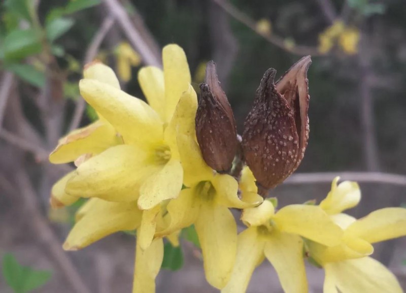 連翹也會反常開花。在百花凋零的秋季、初冬反季開花,成為一道獨特的景觀,是典型的花開二度。連翹二度開花一般出現在秋季。有時也會在初冬,但是比較少見。