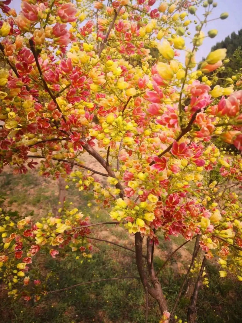 您看圖上紅的黃的連著一片,這便是文冠果。