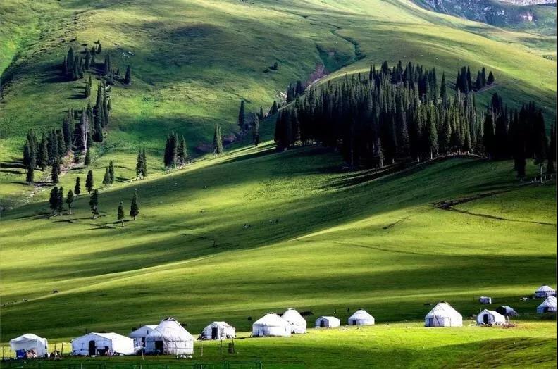 新疆的美,自是不必說。秋天,滿地金黃,濃墨重彩;冬天,茫茫一片,成了雪原;春天,綠草成茵,牛羊滿地。夏天,更是美成了天堂。