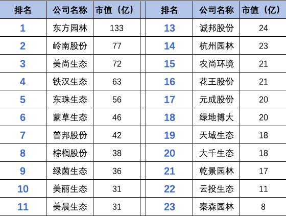 從當(dāng)時(shí)上市公司的市值看,以東方園林為龍頭,市值長期在300億以上,第二梯隊(duì)的市值基本也在150億左右。