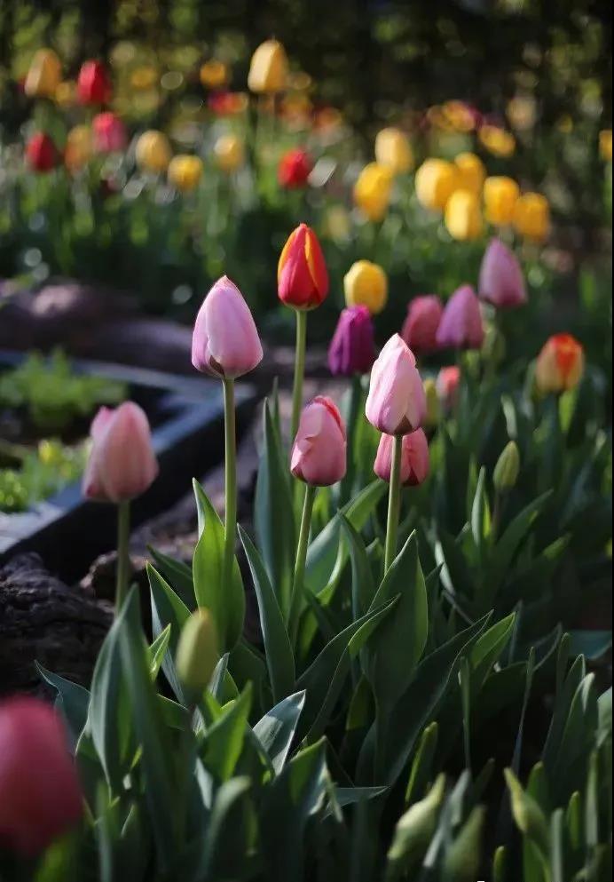 種在花園外面綠化帶里的郁金香,倒是開(kāi)的燦爛。