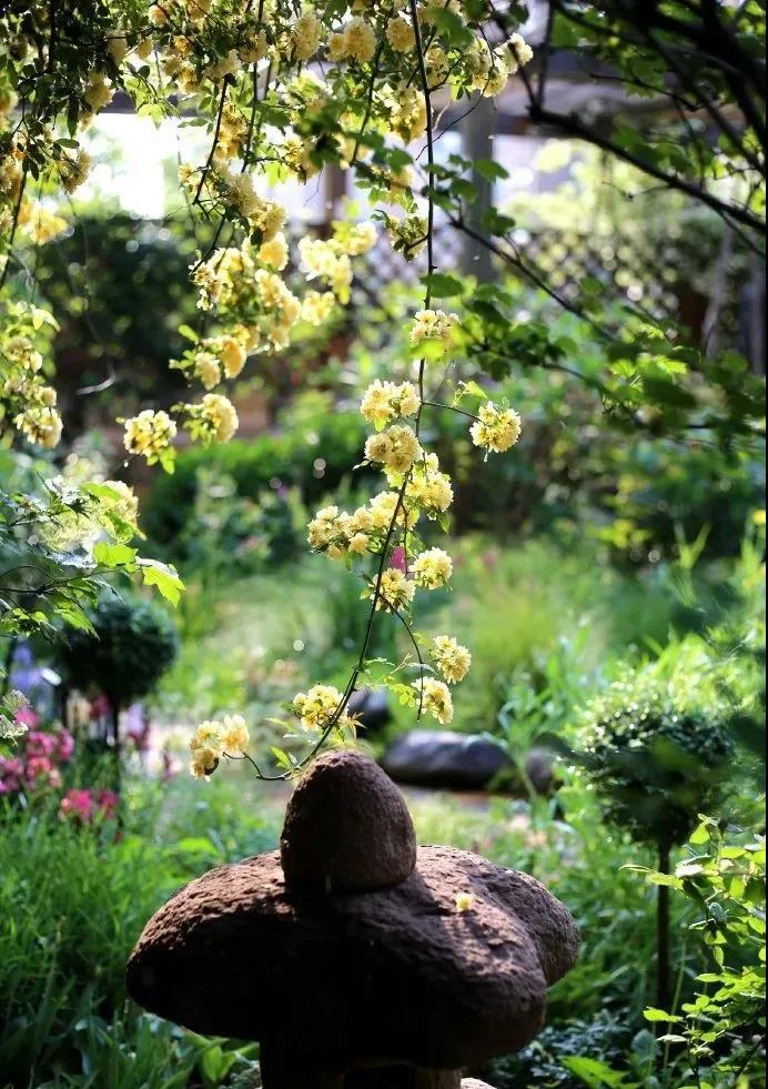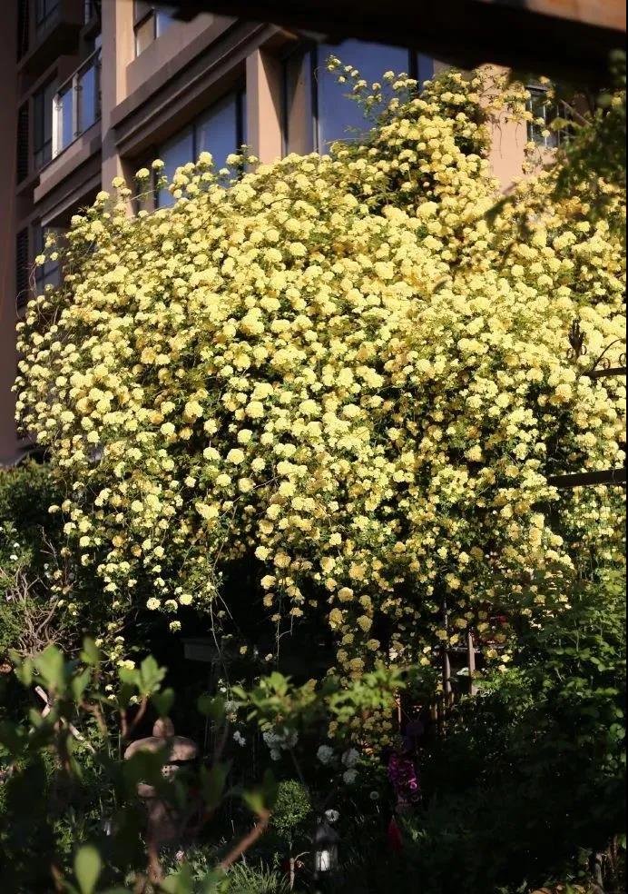 一年又一年,木香從最初的牙簽苗,成長(zhǎng)為小溪,再到現(xiàn)在的木香瀑布,巨大的傘蓋垂下來(lái),驚艷了我的花園。