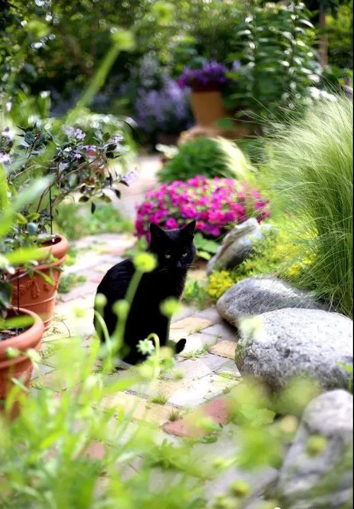 晨光中,黑貓警長(zhǎng)在巡視花園。