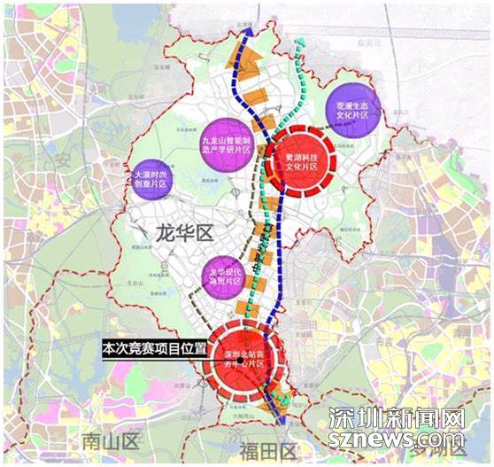 深圳北站商務中心區作為全市17個重點片區之一,位于深港發展中軸和深圳南北中軸線之上,距離福田中心區只有9公里,是中心區外溢輻射的最佳范圍。北站是華南地區面積最大、同時具有口岸功能的特大型綜合交通樞紐,外連香港,內接腹地,區位優勢得天獨厚。另外,自然山水景觀資源豐富,規劃區內紅木山水庫與周邊大腦殼山等山體相互呼應。