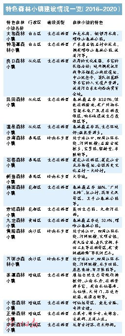 廣州主要在白云區、從化區、番禺區、花都區、黃埔區以及增城區等地完成 17 個森林小鎮建設。