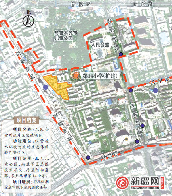 項目范圍:北至兒童公園,南至軍區總醫院家屬院,西至阿勒泰路,東至烏市第14小學。