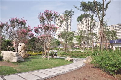 如今,筏清路口綠樹與紅花交相輝映,林間小道干凈整潔,弧形廊架韻味十足,形成了一道靚麗的城市風景。25日傍晚,記者看到,不少市民在此散步、玩耍。“對于這樣的改造,我是大力支持的,畢竟對老百姓有利。”市民王先生說,“現在,家門口就有一個漂亮的小公園,大家又多了一個休閑好去處。”