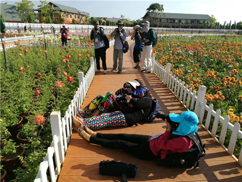 攝影愛好者從不同角度將大麗花花海盛景攝入鏡頭