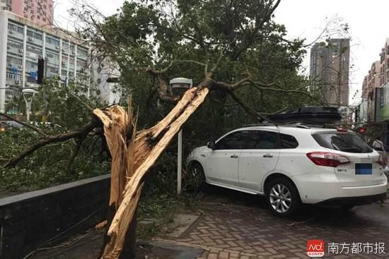 受臺風災害影響,珠海許多樹木倒伏,導致停在樹下的不少車輛損傷,網(wǎng)上也隨之盛傳“園林局為馬路兩旁的每一棵樹都上了保險,汽車被樹砸傷可向園林局索賠”等傳言。