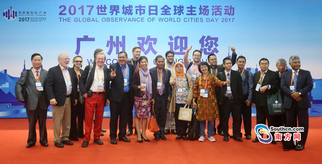 來自世界各地的與會代表為2017世界城市日全球主場活動點贊。南方日報記者肖雄攝