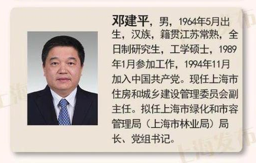 鄧建平擬任上海市綠化和市容管理局局長(zhǎng)