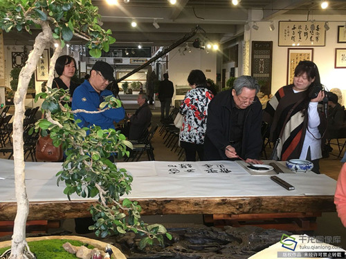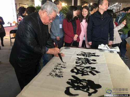 記者了解到,此方巨硯為中國四大名硯之一的端硯,收藏多年,5.6噸的規格在巨硯排行榜上亦是榜上有名。巨硯上的“十八學士登瀛洲”字樣,更是表達了現場藝術家們對2019北京世園會的共同期盼。此次活動現場書寫的書法作品全部贈予2019北京世園會,這些作品也將有機會在2019年在北京世園會中展出。