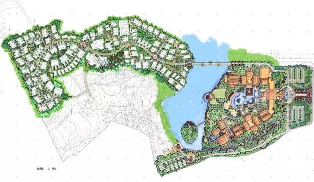 以熱帶溫濕氣候自然景觀為主題,由主園路串聯各個主題景觀空間,讓人徜徉于人造景觀與自然景觀之間,使回歸自然的度假情趣油然而生。豐富的植被,起伏的山體,茂密的椰林,寬闊的水面、充足的陽光,斑駁的影像在景觀設計中得以充分的體現。配合多種形式的水景,不僅象征著生命源泉,也能很好的調節濕度,并在細節處冠以獨特巴厘島風格的小品元素,力求打造巴厘島南洋風情的度假中