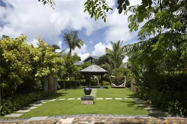 以熱帶溫濕氣候自然景觀為主題,由主園路串聯各個主題景觀空間,讓人徜徉于人造景觀與自然景觀之間,使回歸自然的度假情趣油然而生。豐富的植被,起伏的山體,茂密的椰林,寬闊的水面、充足的陽光,斑駁的影像在景觀設計中得以充分的體現。配合多種形式的水景,不僅象征著生命源泉,也能很好的調節濕度,并在細節處冠以獨特巴厘島風格的小品元素,力求打造巴厘島南洋風情的度假中