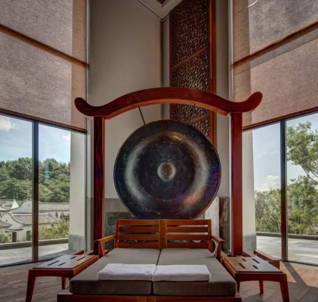 簡單的灰墻沙瓦與三角山墻屋頂相互呼應,宛如時光雕琢而成的天然村落。此外,多重庭院和天井之間,點綴以柔美的園林水榭,充分印證了中國傳統的建筑理念。