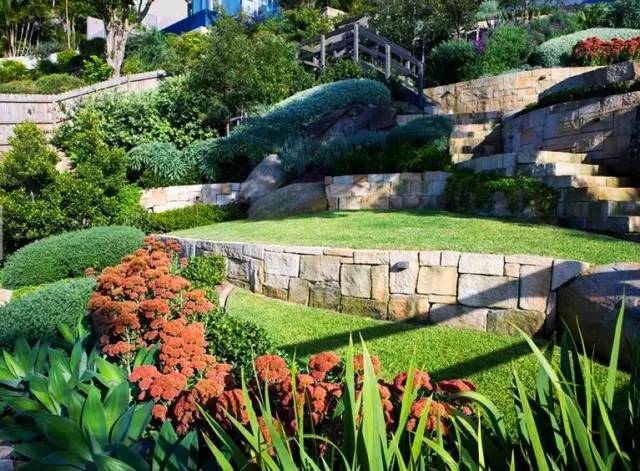 這個花園的設計是一個頗具挑戰性的項目,1600平方米的景觀在一個45度的斜坡上,土地和水的使用都受到了限制。一系列的石質臺階和小徑沿著分層景觀臺一路延伸向岸邊。沿途植物頗為亮眼,一個混合了當地觀賞性灌木和一些經典海灘植物的迷你花園與自然景觀相呼應。