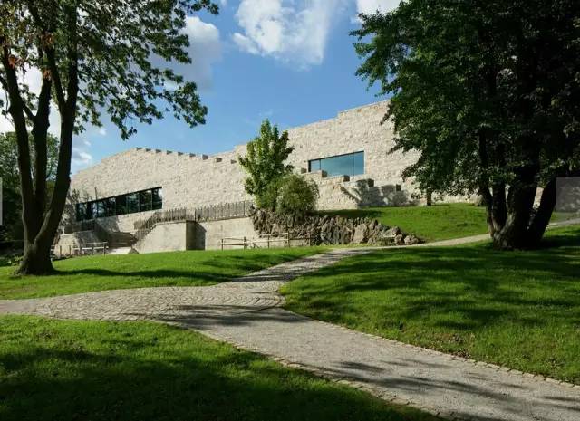 在卡塞爾溫伯格,新博物館的設(shè)計呈現(xiàn)了格林兄弟作品。它將周圍公園的歷史性的和地形特點轉(zhuǎn)變?yōu)橐粋€連續(xù)的開敞空間,邀請參觀者來探索展覽館。在格林兄弟博物館,Grimmwelt Kassel,位于風(fēng)景如畫的公園,在稱之為溫伯格的斜坡區(qū)域,靠近卡塞爾市中心,溫和的融合入平緩的景觀。舊石階,墻的碎片,棚架,種植梯田和茂密的植被,讓公園的特殊氛圍進(jìn)一步加強(qiáng)。新的博物館在周圍的地形中起伏,可以上屋頂,因此提供一個開放的樓梯,引向露臺,能夠俯瞰卡塞爾的景色。設(shè)計在室內(nèi)導(dǎo)致了錯層布置。分層空間圍繞一個中心介紹大廳展覽多種重點學(xué)科。游客在不同氛圍體驗場地,集中在德國語言學(xué),同時收集了格林童話。門廳有前臺,一間店鋪和等候區(qū),一處長空間伸展至整個建筑的深度。結(jié)束在一間日光咖啡里,卡塞爾的全景,和城市南部。鋼筋混凝土結(jié)構(gòu)有淺色天然石材,大致分成具有不同高度的路線。材料的選擇讓人們回想起亨舍爾豪斯,在1945年被空襲毀掉了,現(xiàn)在矗立了一間新博物館。此外,材料的選擇反映了現(xiàn)有的山,和曾經(jīng)是葡萄園下的石灰石。