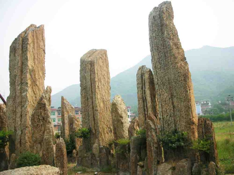 6.石筍石:有灰色和紫褐色兩種,質地軟中有硬,產于江西浙江交界,來源較少非常珍貴。石筍石造型奇特,細長直立似雨后春筍,用此石置景風趣別致。石料斷裂處常有棱角,需打磨光滑后使用,適用于中型魚缸置景用。