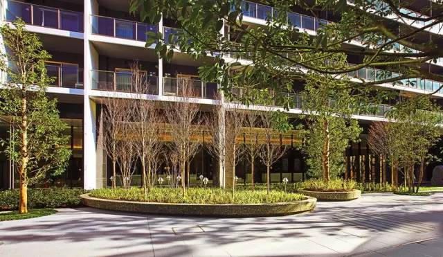 項目是關(guān)于住宅綜合體一層露臺和三層屋頂花園的景觀設(shè)計,為私家院落。設(shè)計師將二層的屋頂花園設(shè)計為自我維護(hù)的花園系統(tǒng),激發(fā)其與周圍環(huán)境的融合,促進(jìn)公共空間的形成。整個綜合體的布局充滿線性和幾何特征。一層露臺,幾棟建筑物圍合出一個中央空間。中央空間以石板鋪裝,強(qiáng)調(diào)其與建筑物的聯(lián)系,突顯入口空間,同時還設(shè)計了一個休閑空間,由抬升的種植池和水景小品組成。水景小品以拋光的混凝土墻為中心,富于水體流動的光影效果。這面幕墻起到部分保護(hù)中央露臺花園的作用。三層屋頂花園分割為兩個功能迥異、相互獨(dú)立卻又相連的空間:南部區(qū)域為一個日光浴場所,顯眼地設(shè)置了游泳池;北部區(qū)域為一個休閑花園,點(diǎn)綴著游樂場元素。設(shè)計的連續(xù)性源自對場地的透徹理解:概念和功能的流暢貫徹至整個公共空間和私人空間;步道路網(wǎng)、休閑功能得到了強(qiáng)化;同時還整合了綠色元素。