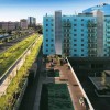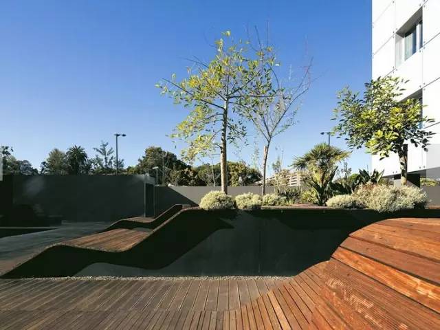 項目是關(guān)于住宅綜合體一層露臺和三層屋頂花園的景觀設(shè)計,為私家院落。設(shè)計師將二層的屋頂花園設(shè)計為自我維護(hù)的花園系統(tǒng),激發(fā)其與周圍環(huán)境的融合,促進(jìn)公共空間的形成。整個綜合體的布局充滿線性和幾何特征。一層露臺,幾棟建筑物圍合出一個中央空間。中央空間以石板鋪裝,強調(diào)其與建筑物的聯(lián)系,突顯入口空間,同時還設(shè)計了一個休閑空間,由抬升的種植池和水景小品組成。水景小品以拋光的混凝土墻為中心,富于水體流動的光影效果。這面幕墻起到部分保護(hù)中央露臺花園的作用。三層屋頂花園分割為兩個功能迥異、相互獨立卻又相連的空間:南部區(qū)域為一個日光浴場所,顯眼地設(shè)置了游泳池;北部區(qū)域為一個休閑花園,點綴著游樂場元素。設(shè)計的連續(xù)性源自對場地的透徹理解:概念和功能的流暢貫徹至整個公共空間和私人空間;步道路網(wǎng)、休閑功能得到了強化;同時還整合了綠色元素。
