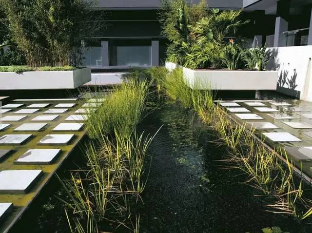 項(xiàng)目是關(guān)于住宅綜合體一層露臺和三層屋頂花園的景觀設(shè)計(jì),為私家院落。設(shè)計(jì)師將二層的屋頂花園設(shè)計(jì)為自我維護(hù)的花園系統(tǒng),激發(fā)其與周圍環(huán)境的融合,促進(jìn)公共空間的形成。整個綜合體的布局充滿線性和幾何特征。一層露臺,幾棟建筑物圍合出一個中央空間。中央空間以石板鋪裝,強(qiáng)調(diào)其與建筑物的聯(lián)系,突顯入口空間,同時還設(shè)計(jì)了一個休閑空間,由抬升的種植池和水景小品組成。水景小品以拋光的混凝土墻為中心,富于水體流動的光影效果。這面幕墻起到部分保護(hù)中央露臺花園的作用。三層屋頂花園分割為兩個功能迥異、相互獨(dú)立卻又相連的空間:南部區(qū)域?yàn)橐粋€日光浴場所,顯眼地設(shè)置了游泳池;北部區(qū)域?yàn)橐粋€休閑花園,點(diǎn)綴著游樂場元素。設(shè)計(jì)的連續(xù)性源自對場地的透徹理解:概念和功能的流暢貫徹至整個公共空間和私人空間;步道路網(wǎng)、休閑功能得到了強(qiáng)化;同時還整合了綠色元素。