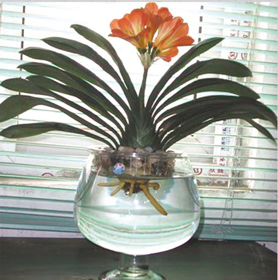 冬季室溫低于10℃時,大多數(shù)水培花卉為適應惡劣的氣候條件處于休眠或半休眠狀態(tài)。此時應停止施用花卉水培營養(yǎng)液,只用自來水,并按時換水(換水時適當摻入一些溫水,使水溫保持在18~25℃左右),清洗植株的根系,保持器皿清潔。一般10~15天更換一次新水,若水質(zhì)清純潔凈,植株長勢健壯,沒有爛根,15~20天乃至30天更換一次也不會影響其生長。對那些仍處于緩慢生長的水培花卉,如君子蘭、馬蹄蓮等,可10-15天施用一次營養(yǎng)液,以促使其健康生長。