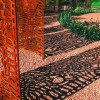 這個(gè)獨(dú)特的景觀項(xiàng)目設(shè)計(jì)的目的是呈現(xiàn)澳大利亞的本土景觀以及桉樹獨(dú)特、神秘的特質(zhì)。桉樹沿金屬板栽種成帶狀布局。這種單一的模式表現(xiàn)的是桉樹的地方特色;復(fù)雜的葉子形狀說明他們都是沿短暫存在的水源生存的機(jī)會(huì)主義者;種類繁復(fù)的桉樹也有著豐富多種的色彩、紋理和形態(tài)。置于地面上形態(tài)各異的桉樹干葉起到了裝飾的作用,隱藏在內(nèi)的桉樹油則散發(fā)出迷人的香味,使人愉悅。