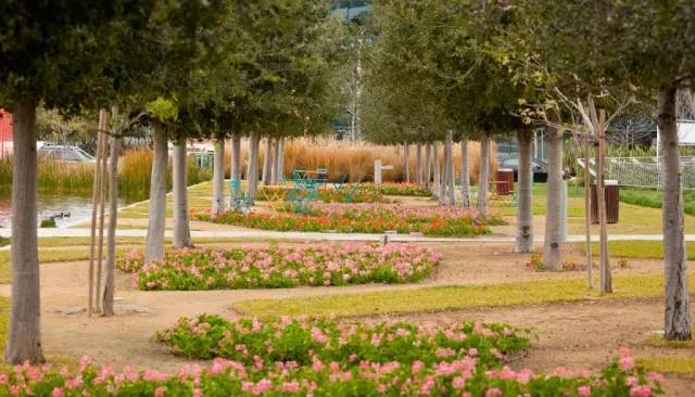 美國加利福尼亞 Playa Vista 中央公園位于洛杉磯國際機(jī)場(chǎng)北部,由OJB負(fù)責(zé)景觀設(shè)計(jì)。受傳統(tǒng)歐洲花園的啟發(fā),并作為傳統(tǒng)企業(yè)廣場(chǎng)的替代品,Playa Vista中心公園被設(shè)計(jì)為一個(gè)向公眾開放的娛樂、運(yùn)動(dòng)及休閑場(chǎng)所,公園有茂盛的樹林、流水、各種運(yùn)動(dòng)場(chǎng)地和兒童娛樂區(qū),公園中心是一個(gè)殼形草地圓形劇場(chǎng)。