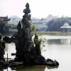 堆疊假山和建造房屋一樣,必須先做基礎,即所謂的“立基”。首先按照預定設計的范圍,開溝打樁。基腳的面積和深淺,則由假山山形的大小和輕重來決定。計成在《園冶》“立基”條中說:“假山之基,約大半在水中立起。先量頂之高大,才定基之淺深。掇石須知占天,圍土必然占地。最忌居中,便宜散漫。”所以園林假山的堆疊必須從設計出發,做到胸有成竹,意在筆先,先確定假山基礎的位置、外形和深淺等,否則當假山的基礎已出地面,再想改變假山的整體形狀,增加高度或體量,就很困難了。一般假山基礎的開挖深度,以能承載假山的整體重量而不至于下沉,并且能在久遠的年代里不變形的要求為原則。同時也必須做到假山工程造價較低而施工簡易的要求。 假山工程的基礎可分為陸地和涉水兩種,在做法上又有樁基、灰土基礎和混凝土基礎之分。樁基這是一種最古老的假山基礎做法,《園冶·掇山》說:“掇山之始,樁木為先,較其短長,察乎虛實。”尤其是水中的假山或假山駁岸,用得較為廣泛。其原理是將樁柱的底頭打到能接觸到水下或弱土層下的硬土層,以形成一個人工加強的支撐層,樁柱在假山基礎范圍內均勻分布,這種樁稱為“支撐樁”。平面布置按梅花形排列的則稱“梅花樁”;用以擠實土壤,以加強土壤承載力的,則稱之為“摩擦樁”。樁柱通常多選用柏木或杉木,以取其通直而較耐水濕。樁粗一般在10~15厘米左右,樁長一般在100厘米以上至150厘米以上不等。如做駁岸,少則三排,多則五排,排與排之間的間距一般在20厘米左右。在蘇州古典園林中,凡有水際駁岸的假山基礎,大多用杉木樁,如拙政園水邊假山駁岸的杉木樁長約150厘米;而北方則多用柏木樁,如北京頤和園的柏木樁長約160~200厘米。樁木頂端露出湖底十幾厘米至幾十厘米,其間用塊石嵌緊,再用花崗巖條石壓頂。條石上面再用毛石和自然形態的假山石,即《園冶·掇山》所云:“立根鋪以粗石,大塊滿蓋樁頭”。條石和毛石應置于最低水位線以下,自然形態的假山石的下部亦應在水位線以下,這樣不僅美觀,也可減少樁木的腐爛,所以有的樁木能逾百年而不壞。 除了木樁之外,也有用鋼筋混凝土樁的。由于我國各地的氣候條件和土壤情況各不相同,所以有的地方,如揚州地區為長江邊的沖積砂層土壤,土壤空隙較多,通氣較多,加之土壤潮濕,木樁容易腐爛,所以傳統上還采用“填充樁”的方法。所謂填充樁,就是用木樁或鋼桿打樁到一定的深度,將其拔出,然而在樁孔中填入生石灰塊,再加水搗實,其凝固后便會有足夠的承載力,這種方法稱為“灰樁”;如用碎瓦礫來充填樁孔,則稱為“瓦礫樁”。其樁的直徑約為20厘米,樁長一般在60~100厘米,樁邊的距離為50~70厘米。蘇州地區因其土壤粘性相對較強,土為基礎方法,稱為“石釘樁”,再在縫隙中夾填碎石,上用碎磚片和素土夯實,中間鋪以大石塊;若承重較大,則在夯實的基礎上置以條石。北京圓明園因處于低濕地帶,地下水成了破壞假山基礎的重要因素,包括土壤的凍脹對假山基礎的影響,所以其常用在樁基上面打灰土的方法,以有效地減少地下水對基礎的破壞。 灰土基礎某些北方地區,因地下水位不高,雨季比較集中,這樣便使灰土基礎有個比較好的凝固條件。灰土一經凝固,便不透水,可以減少土壤凍脹的破壞。所以在北京古典園林中,對位于陸地上的假山,多采用灰土基礎。灰土基礎的寬度一般要比假山底面的寬度寬出50厘米左右,即所謂的“寬打窄用”。灰槽的深度一般為50~60厘米。2米以下的假山,一般是打一步素土,再一步灰土。所謂的一步灰土,即布灰30厘米左右,踩實到15厘米左右后,再夯實至10厘米多的厚度。2~4米高的假山,用一步素土、兩步灰土。灰土基礎對石灰的要求,必須是選用新出窯的塊灰,并在現場潑水化灰,灰土的比例為3∶7,素土要求是顆粒細勻不摻雜質的粘性土壤。 混凝土基礎近代假山一般多采用漿砌塊石或混凝土基礎,這類基礎耐壓強度大,施工速度快。塊石基礎常用沒有造型和沒有多少利用價值的假山石,或花崗巖毛石、廢條石等筑砌,所以也稱毛石基礎。這種基礎適用于中小型假山。其基礎的厚度根據假山的體量而定,一般高在2米左右的假山,其厚度在40厘米左右;4米左右的假山,其厚度則在50厘米左右;毛石基礎的寬度應比假山底部寬出30厘米以上。毛石需滿鋪鋪平,石塊之間相互咬合,搭配緊密,縫隙用碎石及150~200#的水泥砂漿或混凝土灌實作平,使它連成整體。堆疊大型假山則常采用鋼筋混凝土板基礎,先需要挖土到設計所需的基礎深度,人工夯實底層素土,再用150~200#的混凝土做厚7~10厘米的墊層,然后再在上面用鋼筋扎成20厘米左右見方的網狀鋼筋網,最后用混凝土澆注灌實,經一周左右的養護后,方可繼續施工。 在假山施工中還有“拉底”一說。所謂的拉底,就是在假山基礎上疊置最底層的自然假山石的術語,其正如《園冶·掇山》所說的:“方堆頑夯而起,漸以皴文而加。”選用頑夯的大塊山石拉底,具有堅實耐壓、永久不壞的作用,同時因為這層山石大部分在地面以下,小部分露出地表,而假山的空間變化卻都立足于這一層,所以古代疊山匠師們把拉底看作是疊山之本。其要點:一是統籌向背,即根據設計要求,統籌確定假山的主次關系,安排假山的組合單元,再來確定底石的位置和發展體勢。二是曲折錯落,即假山底腳的輪廓線一定要打破直