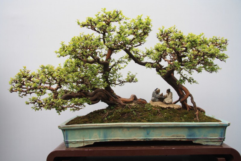 北京盆景是漢民族族優(yōu)秀的傳統(tǒng)藝術(shù)之一,大約形成于明代,形成流派的時(shí)間雖然不長(zhǎng),但實(shí)際上也有幾百年的歷史。由于受到自然和社會(huì)諸種條件限制,北京盆景發(fā)展一直緩慢,1980年成立北京市盆景協(xié)會(huì),特別是在舉辦了幾次全國(guó)性的盆景藝術(shù)作品展覽后,北京盆景才有了長(zhǎng)足的進(jìn)步,并很快形成了自己的造型技法和藝術(shù)特色。 在造型方面吸取了南、北兩派之長(zhǎng),以剪為主,以扎為輔,剪扎結(jié)合。北京盆景學(xué)習(xí)和繼承了首都古典園林藝術(shù)的優(yōu)秀傳統(tǒng),并由于受到中原文化的薰陶,因而其盆景藝術(shù)風(fēng)格表現(xiàn)為敦厚穩(wěn)健,古雅質(zhì)樸。 起源 明朝王世懋所著《學(xué)圃雜書(shū)》中說(shuō):“京師許多千歲家,見(jiàn)盆中一綠曹玉蝶梅,梅之極品。”清朝的《日下舊聞考》記載:“京師臘月即買(mǎi)牡丹、梅花、緋桃、探春諸花,皆貯暖室,以火烘之。’慷熙皇帝有兩首詠盆景的詩(shī):《詠御制盆景榴花》和《詠盆中松》。到清朝后期,在借鑒外地盆景制作的基礎(chǔ)上,結(jié)合本地的自然條件與民風(fēng)民俗,逐漸發(fā)展為梅花樁景、宮廷桂樹(shù)、石榴盆景、牡丹盆景等等,中山公園、頤和園等園林單位還保存了一些百年以上的桂樹(shù)、石榴樁景。 由于受到自然和社會(huì)諸種條件限制,北京盆景發(fā)展一直緩慢,1980年成立北京市盆景協(xié)會(huì),特別是在舉辦了幾次全國(guó)性的盆景藝術(shù)作品展覽后,北京盆景才有了長(zhǎng)足的進(jìn)步,并很快形成了自己的造型技法和藝術(shù)特色。 在造型方面吸取了南、北兩派之長(zhǎng),以剪為主,以扎為輔,剪扎結(jié)合。布局上因材制宜,繁中求簡(jiǎn),粗中有細(xì),露中有藏,達(dá)到參差錯(cuò)落,統(tǒng)一中求變化,變化中求統(tǒng)一。測(cè)技多以橫技式出現(xiàn),樹(shù)冠多作扇形或半圓形,以顯示雄偉剛勁的氣勢(shì)。 特色 北京盆景學(xué)習(xí)和繼承了首都古典園林藝術(shù)的優(yōu)秀傳統(tǒng),并由于受到中原文化的薰陶,因而其盆景藝術(shù)風(fēng)格表現(xiàn)為敦厚穩(wěn)健,古雅質(zhì)樸。 常用樹(shù)種有:鵝耳標(biāo)、樸樹(shù)、荊條、華山松、鼠李、楓樹(shù)、榆樹(shù)、山植、檜拍、云杉等多達(dá)40余種。 常用石材有:斧劈石、砂積石、千層石、鐘乳石、雞骨石等。 如今北京盆景,已不只一上那么多的了, 很多喜歡養(yǎng)花養(yǎng)草的人家自家也會(huì)培養(yǎng)一些簡(jiǎn)單易活的盆景。