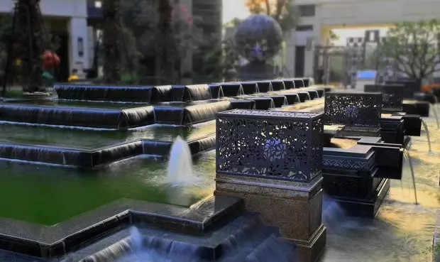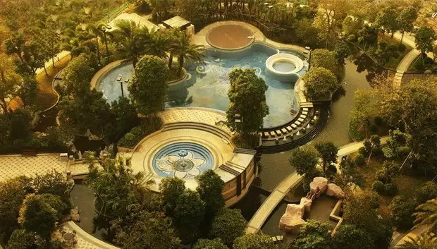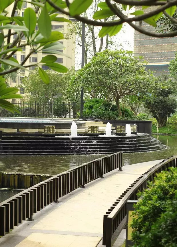 南部地塊則定位于低調奢華的皇家公園。設計中,以極強的軸線構圖打造尊貴體驗,再配以花海營造繽紛怡然的入口花園,形成奢華府邸,卻以深藏于延伸自南湖的綠色自然的手法予以演繹。