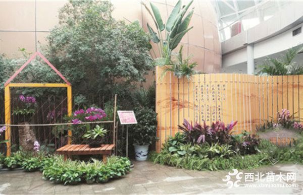 植物、花藝、種子、大自然等元素貫穿于整個花展,融入景點的設計體現出人們日常生活中的細節,讓人們體驗“花藝”的生活樂趣。步入展廳,愜意而悠閑的景點便是“指間幸福”。置身于花橋前,讓人忍不住抬頭眺望水墨淡彩的遠山,放下手機在指間捕捉一縷陽光,感受魚與漁的樂趣,讓幸福充盈心田。往前走,則是化蝶而舞的“心間蝶舞”景點。成百上千的花兒幻化成美麗蝴蝶在林間翩翩起舞,美輪美奐,守住人們心間最初的美好。穿過“蝴蝶”來到“夢間芳華”景點,背倚南天竹、蓮蓬等植物種子制作的藝術畫面,坐攬滿庭暗香浮動花香,體驗田園生活的樂趣,不負花田月下的芳華之美。最后進入的是科普中心區的“詩間遠方”。這里的畫卷有著陶淵明心目中的未來圖騰,遠方美好就在他的秋菊旁,就在他那詩情畫意的生活中。另外,運用蝴蝶蘭、鳳梨、蕨類等附生植物對溫室獨木成林、空中花園等原始景觀進行裝扮,展示熱帶雨林獨有的特色植物景觀。