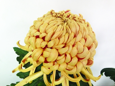 “古剎金剛”為平瓣球形花,它的泥金色是菊花里少有的顏色,“今年的這盆‘古剎金剛’花朵茁壯、舒展,葉片均勻長勢良好,花期控制得也好”,中國風景園林學會菊花分會名譽理事長、原理事長張樹林先生給予高度評價。