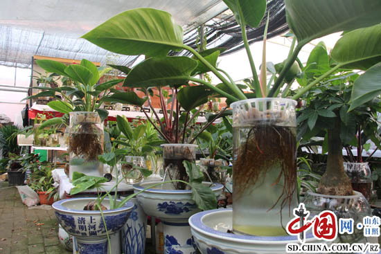 日照迎賓路花卉市場有個養植能手:他能把土培植物變成水培植物
