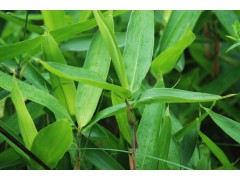 箬竹,拼音:ruozhu。(學名:Indocalamus tessellatus (munro) Keng f. )竿高0.75-2米,直徑4-7.5毫米;節間長約25厘米,最長者可達32厘米,圓筒形,在分枝一側的基部微扁,一般為綠色,竿壁厚2.5-4毫米;節較平坦;竿環較籜環略隆起,節下方有紅棕色貼竿的毛環。籜鞘長于節間,上部寬松抱竿,無毛,下部緊密抱竿,密被紫褐色伏貼疣基刺毛,具縱肋;籜耳無;籜舌厚膜質,截形,高1-2毫米,背部有棕色伏貼微毛;籜片大小多變化,窄披針形,竿下部者較窄,竿上部者稍寬,易落。小枝具2-4葉;葉鞘緊密抱竿,有縱肋,背面無毛或被微毛;無葉耳;葉舌高1-4毫米,截形;葉片在成長植株上稍下彎,寬披針形或長圓狀披針形,長20-46厘米,寬4-10.8厘米,先端長尖,基部楔形,下表面灰綠色,密被貼伏的短柔毛或無毛,中脈兩側或僅一側生有一條氈毛,次脈8-16對,小橫脈明顯,形成方格狀,葉緣生有細鋸齒。圓錐花序(未成熟者)長10-14厘米,花序主軸和分枝均密被棕色短柔毛;小穗綠色帶紫,長2.3-2.5厘米,幾呈圓柱形,含5或6 朵小花;小穗柄長5.5-5.8毫米;小穗軸節間長1-2毫米,被白色絨毛;穎3片,紙質,脈上具微毛,第一穎長5-7毫米,先端鈍,有5脈;第二穎長7-10.5毫米(包括先端長為1.4-2毫米的芒尖在內),具7脈;第三穎長10-19毫米(包括先端長為2.3-2.7毫米的芒尖在內),具9脈;第一外稃長11-13毫米(包括先端長為1.7-2.3毫米的芒尖在內),背部具微毛,有11-13脈,基盤長0.5-1毫米,其上具白色髯毛;第一內稃長約為外稃的1/3,背部有2脊,脊間生有白色微毛,先端有2齒和白色柔毛;花藥長約1.3毫米,黃色;子房和鱗被未見。筍期4-5月,花期6-7月。