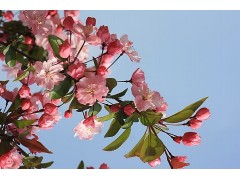 海棠種類繁多,樹形多樣,葉茂花繁,豐盈嬌艷,可地栽裝點園林。可在門庭兩側對植,或在亭臺周圍、叢林邊緣、水濱布置;若在觀花樹叢中作主體樹種,其下配植春花灌木,其后以常綠樹為背景,則尤綽約多姿,嫵媚動人。若在草坪邊緣、水邊湖畔成片群植,或在公園游步道旁兩側列植或叢植,亦具特色。海棠不僅花色艷麗,其果實亦玲瓏可觀。至秋季果實成熟,紅黃機映高懸枝間,恰似紅燈點點,乘風蕩漾,別具風姿。每當冬末春初,大雪紛飛,在一片銀裝素裹的世界里,庭園中有幾株掛滿紅色小果的海棠,不僅為園林冬景增色,同時也為冬季招引小鳥提供上好的飼料。海棠對二氧化硫有較強的抗性,故適用于城市街道綠地和廠礦區綠化。海棠是制作盆景的材料。若是挖取古老樹樁盆栽,通過藝術加工,可形成蒼老古雅的樁景珍品。水養花枝可供瓶插及其它裝飾之用。