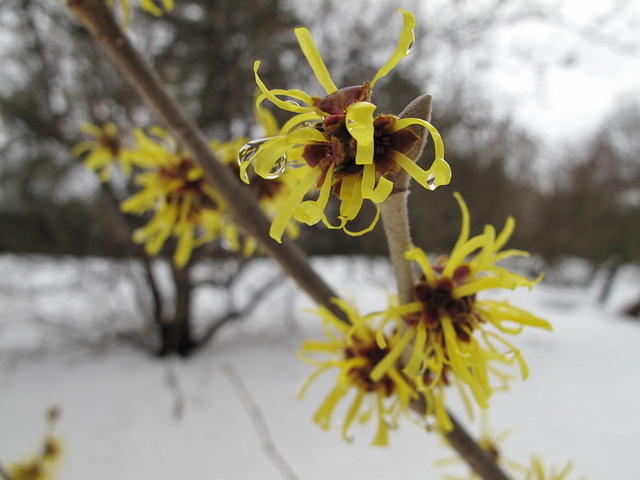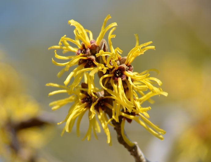 金縷梅(Hamamelis mollis Oliver ),別名木里香、牛踏果,薔薇目、金縷梅科、金縷梅屬落葉灌木或小喬木,高達8米;嫩枝有星狀絨毛;老枝禿凈;芽體長卵形,寬倒卵圓形葉 形美麗。2月前后先葉開放,花數朵簇生葉腋,色金黃,其金瓣如縷,翩翩起舞,婀娜多姿,早春開花,迎雪怒放,狀似蠟梅,故名。由于其耐寒能力又名“忍冬花”。長江流域各省均有分布。