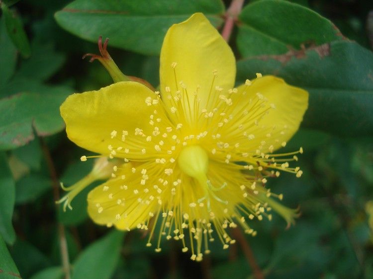 金絲桃和金絲梅是同科屬金絲桃科的植物,只是兩種不同品種,外觀極其相似,如果要說區(qū)別,那最明顯的區(qū)別就是金絲桃的花絲長,金絲梅的花絲短。