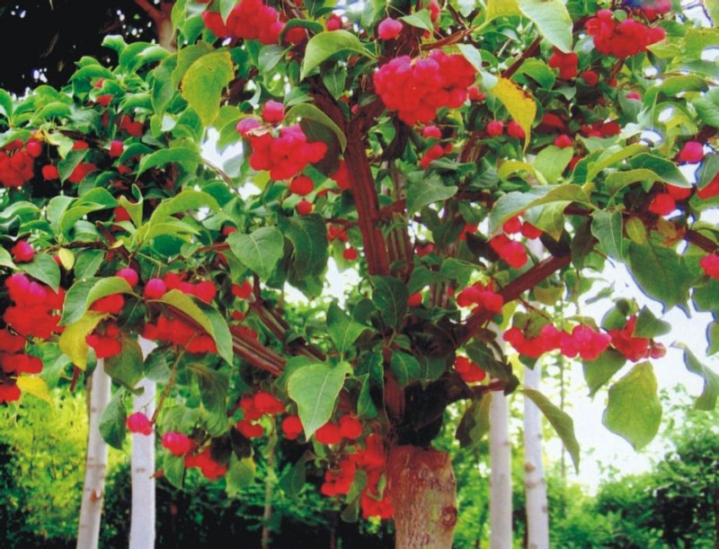 蒴果近球狀、倒錐狀,不分裂或上部4-5淺凹,或4-5深裂至近基部,果皮平滑或被刺突或瘤突,心皮背部有時延長外伸呈扁翅狀,成熟時胞間開裂,果皮完全裂開或內層果皮不裂而與外層分離在果內突起呈假軸狀;種子每室多為1-2個成熟,稀多至6個以上,種子外被紅色或黃色肉質假種皮;假種皮包圍種子的全部,或僅包圍一部而成杯狀、舟狀或盔狀