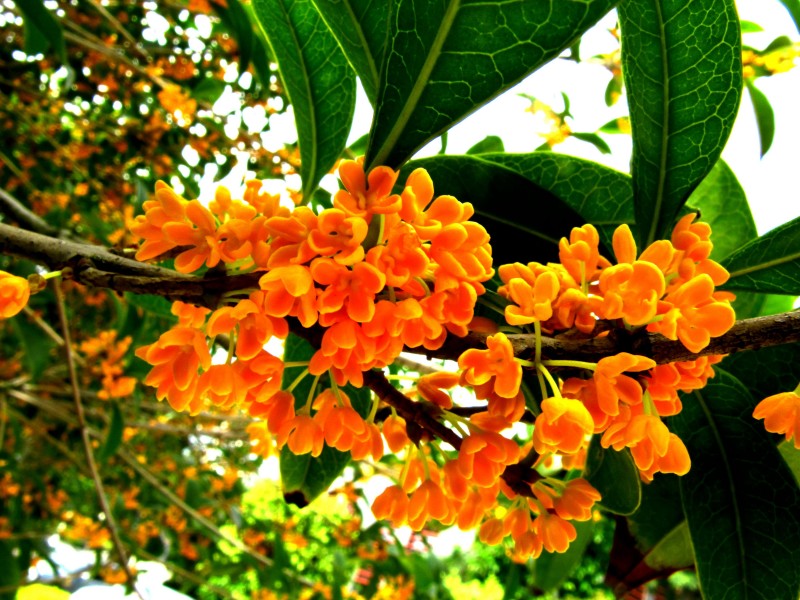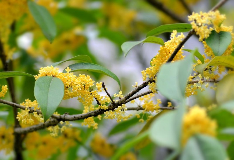 金桂:花色為深淺不同的黃色,香味濃或極濃,花朵較易脫落,花期秋季。為各地最常見栽培的一類。